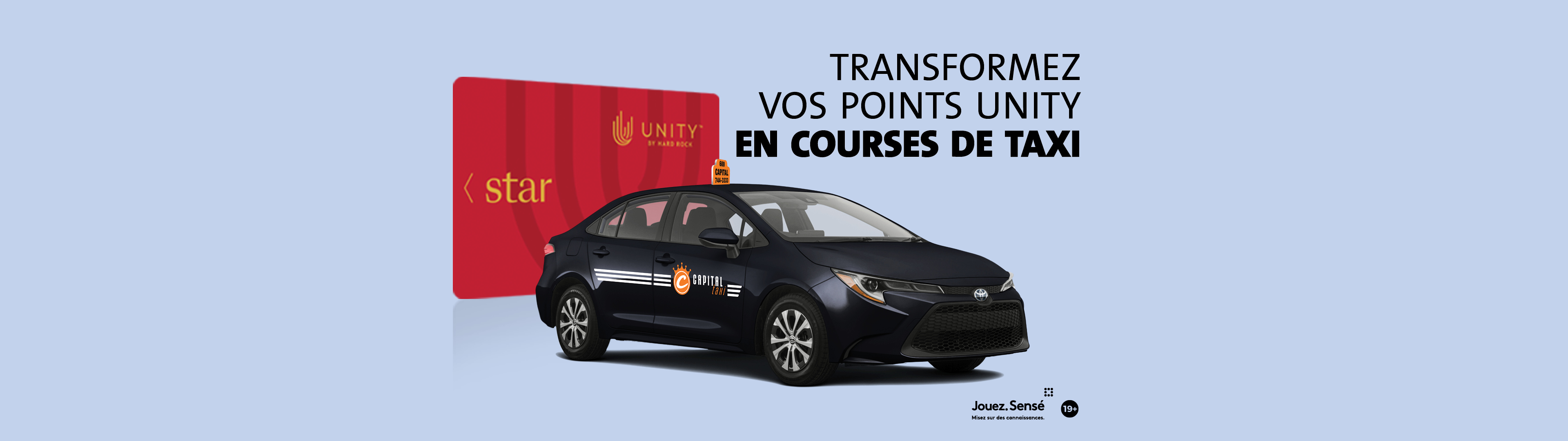 NOUVEAU! Échangez vos Points Unity contre des courses en taxi depuis et vers votre domicile au Hard Rock Hotel & Casino Ottawa. Visitez le bureau Player's Club pour plus d’informations et pour réserver votre trajet.