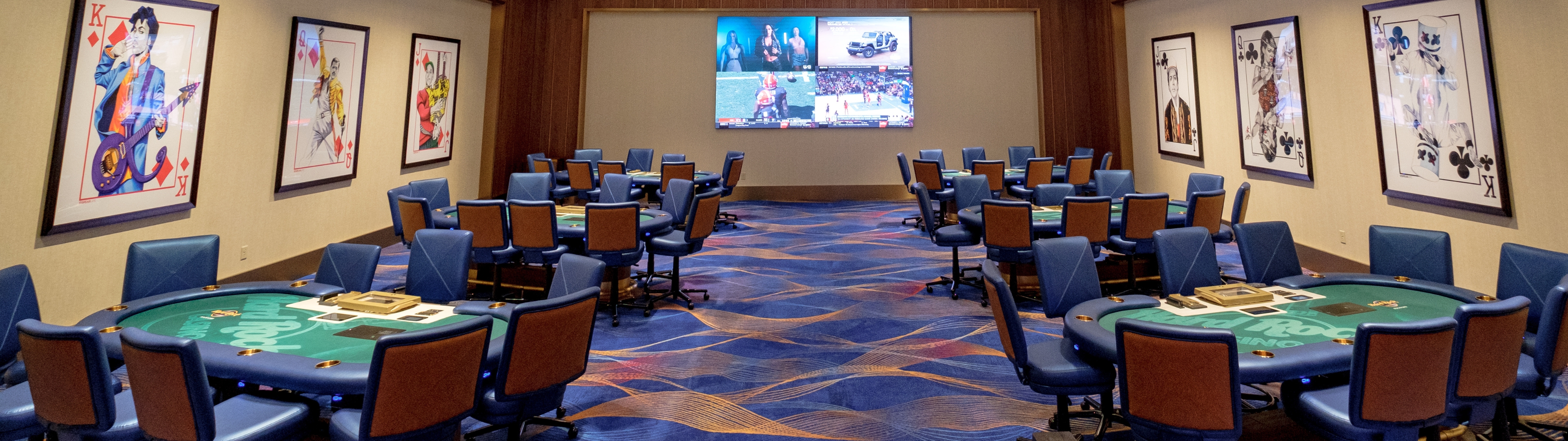Experience the thrill of poker at Hard Rock Casino Rockford. Whether you're a seasoned pro or a novice player, come test your luck in the region's only live poker room. We have six tables to satisfy all of your Live-Action and Tournament needs! Each table is staffed with skilled, knowledgeable dealers who will happily answer any questions you may have and provide you with the best poker experience around. Play in a comfortable setting while watching live sports on four large television screens. All you need is a chip and a chair for a chance to win big!