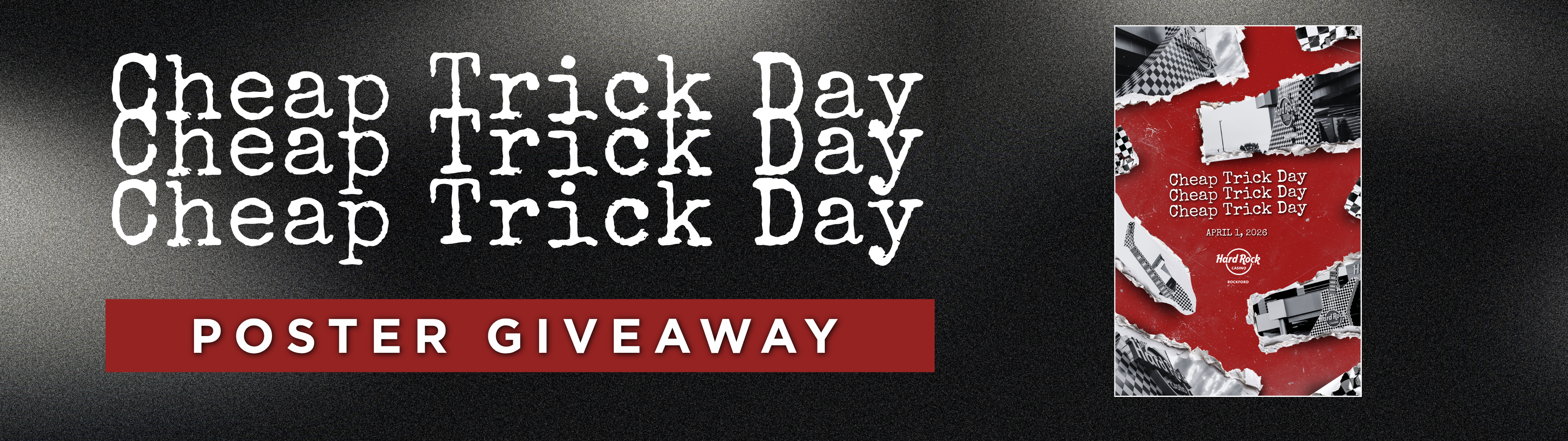 Stop by the Players Club at 10AM with your Unity Rewards card and valid ID to claim your FREE Cheap Trick Day Poster. We're giving away 1,053 posters, and 53 are personally signed by Rick Nielsen! Pull a signed one and you’ll WIN FREE PLAY.  Open to all existing Unity Members. Limit one per person.  Event begins at 10am, first come, first served. Available while supplies last.