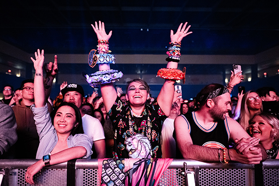 A live performance by Seven Lions at Hard Rock Live, where fans in the front row standing section are treated to an unforgettable show. (Photo by Chris Tuite).